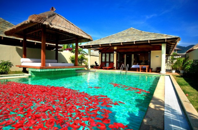 三亞亞龍灣五號度假別墅酒店位于亞龍灣國家AAAA級旅游度假區(qū)內,是由108棟獨具熱帶濃郁巴厘島風情的園林別墅和1棟會所組成。酒店與大海相臨,匯聚人脈,盡享上流生活貴胄之尊;與高爾夫球場互倚,吸納廣袤大地之靈氣,成就一方純美俊景于眼前。系當前中國首家超大型至尊濱海度假別墅區(qū)。三亞亞龍灣五號度假別墅酒店總占地面積200畝,總建筑面積4.5萬平方米。其中別墅建筑面積3.6萬平方米;會所面積8千平方米;綠地面積9.5萬平方米,綠化率達71%;并建有約1.4萬平方米的人工湖泊。三亞亞龍灣五號度假別墅酒店由九種不同類型的單體別墅組成。戶型包括行政別墅、三居別墅、四居別墅、情侶別墅、會所客房、五居別墅、國王別墅和總統(tǒng)別墅。每戶均設客廳、餐廳、廚房、保姆房及庭院、泳池、花園、蓮花池、SPA亭、車位,將古樸與現(xiàn)代,開放與私密完美結合,追求“有若自然”的新貴族風范。酒店將“中式管家”服務與現(xiàn)代高級度假酒店完美結合,首創(chuàng)了中國品質海濱度假別墅酒店的全新服務模式?头刻峁┍、迷你吧、嬰兒床、叫醒服務、沙灘接送、送餐等服務,所有別墅均可免費上網。