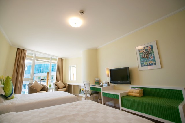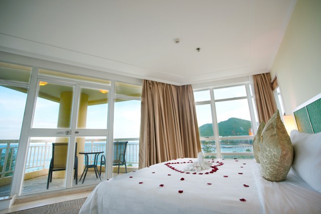 豪華海景房,面積35平方米,樓層2-9層,有陽臺,180度海景,大床(2*2米),雙標(biāo)(1.35*2米),90%有浴缸 免費(fèi)寬帶