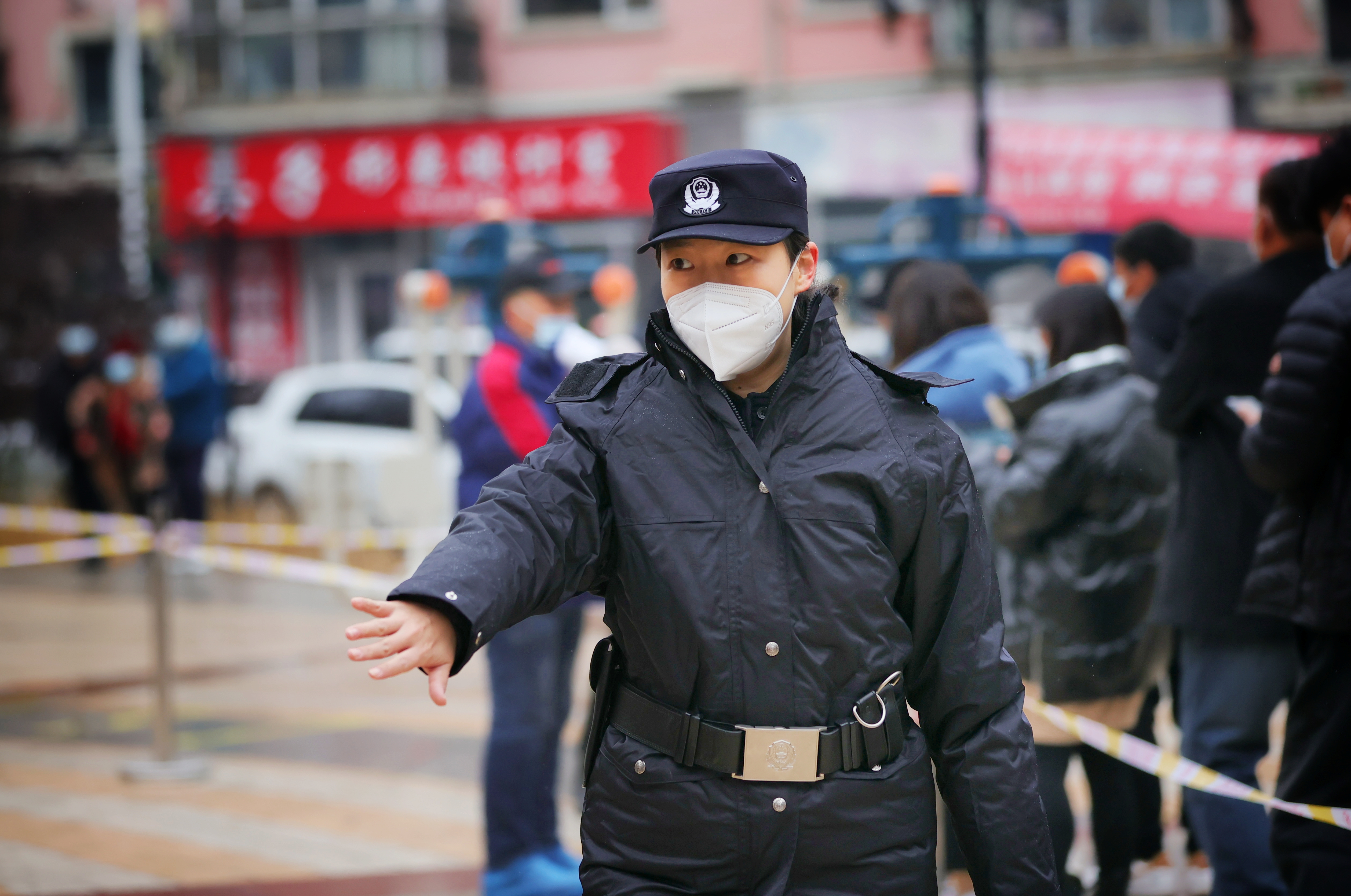 新華街道派出所女民警在取樣點(diǎn)執(zhí)勤