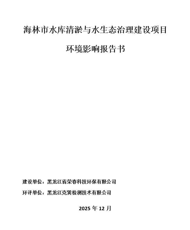 海林市水庫清淤與水生態(tài)治理建設(shè)項目環(huán)境影響報告書